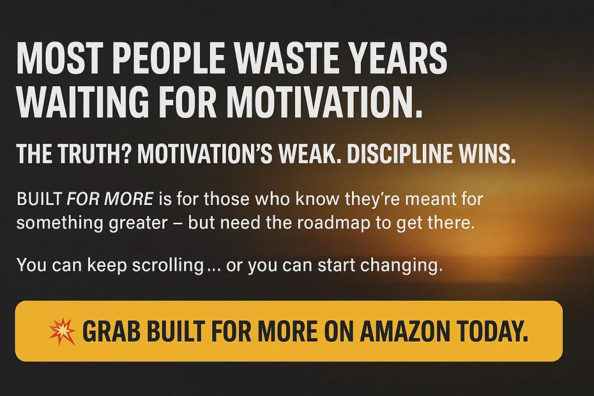 “Built for More” is the wake-up call that rewires your mindset — helping you move from distraction and insecurity to clarity, action, and unstoppable momentum.